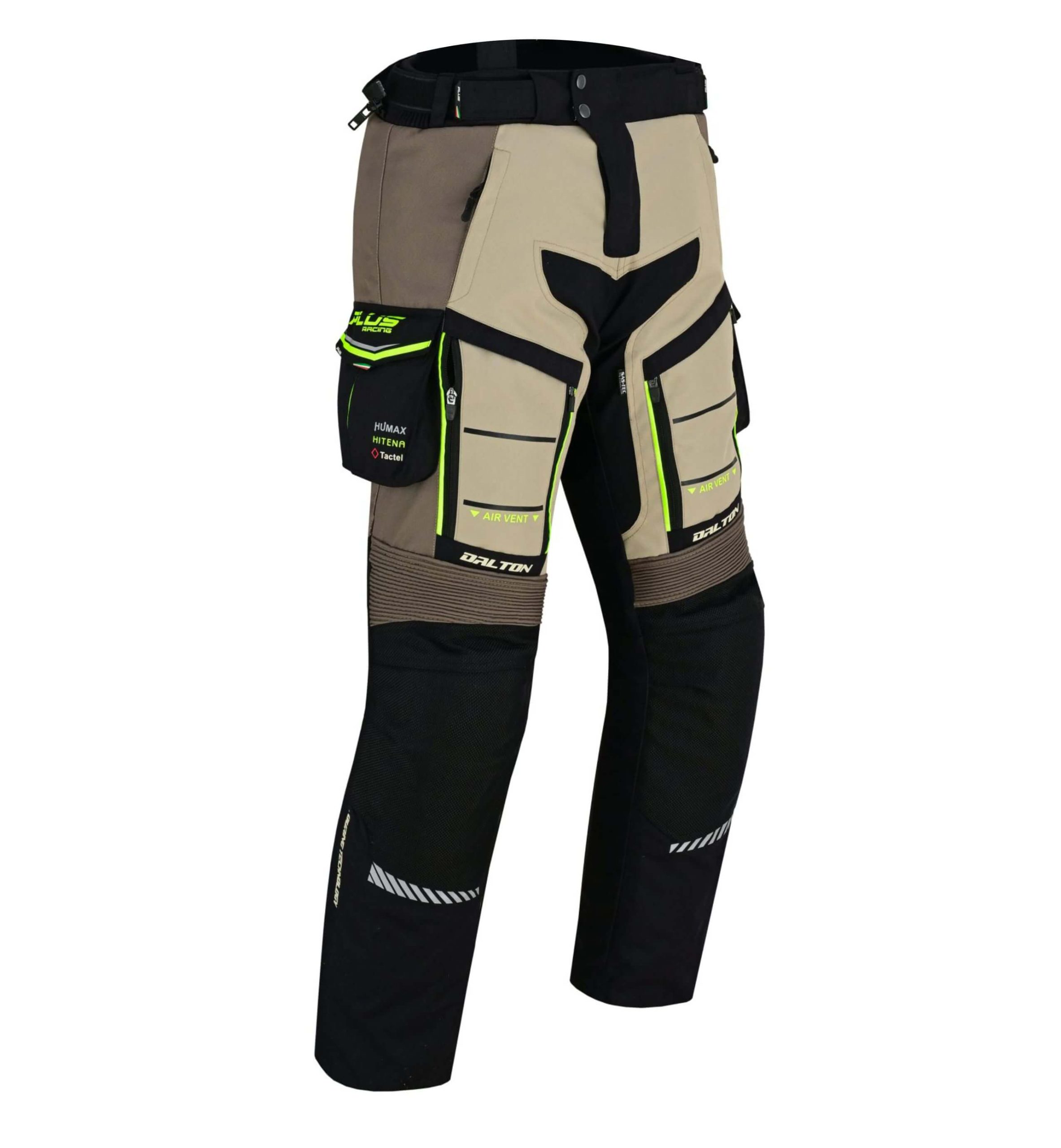 PLUS Racing DALTON Pant is a high-quality multi-role adventure pant that offers hybrid functionality and premium features. Its inclusion of standalone technologies such as 750 D Tactel outer shell, 1200 D Hitena fabric reinforcements and Humax membrane makes it one of the best textile pants available on the market. The new desert sand color, combined with its multi-weather compatibility, enables the pant to be used in any terrain or conditions.