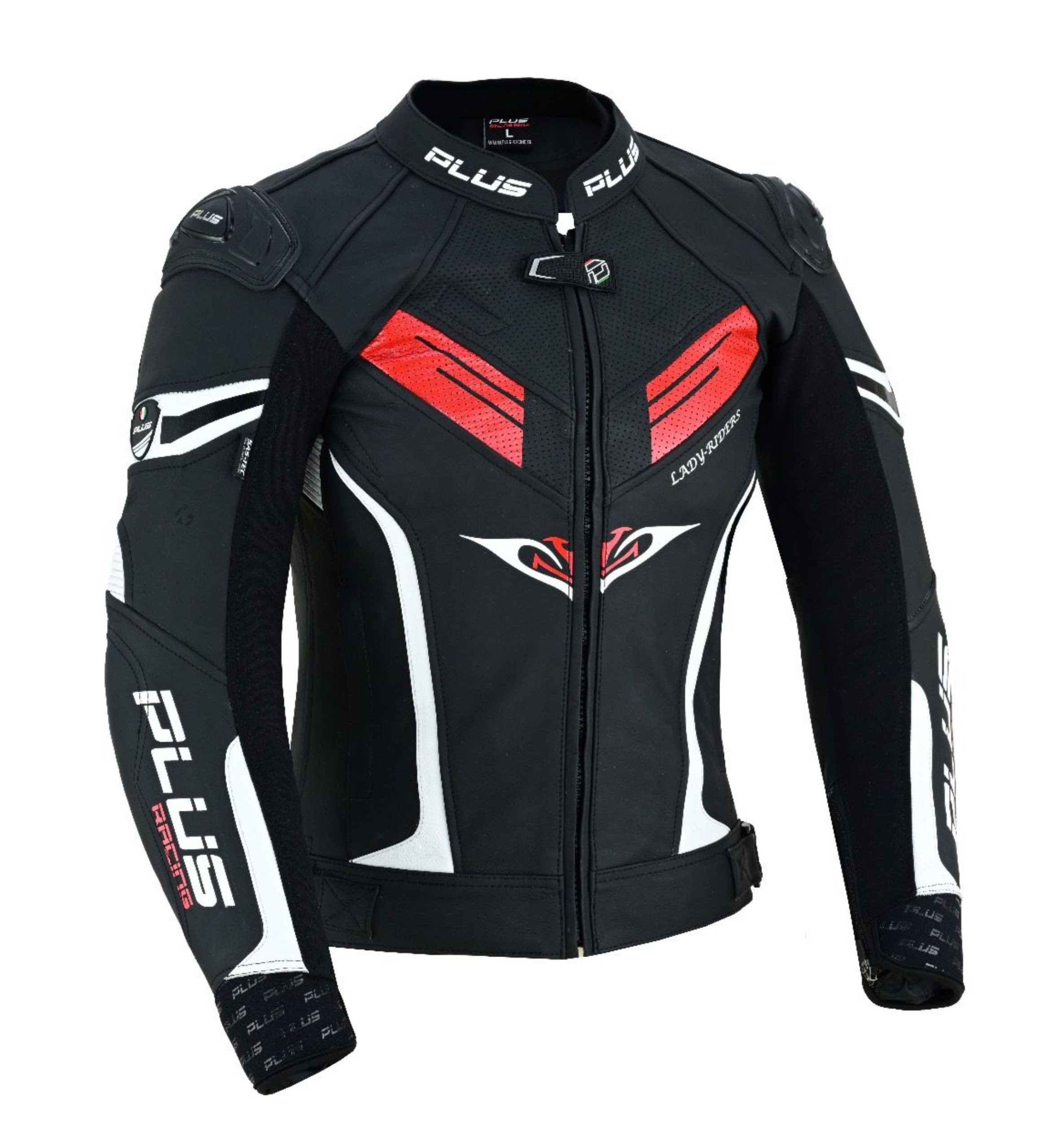 PLUS Racing LILLY ladies leather jacket is professionally designed to protect ladies with style and comfort.